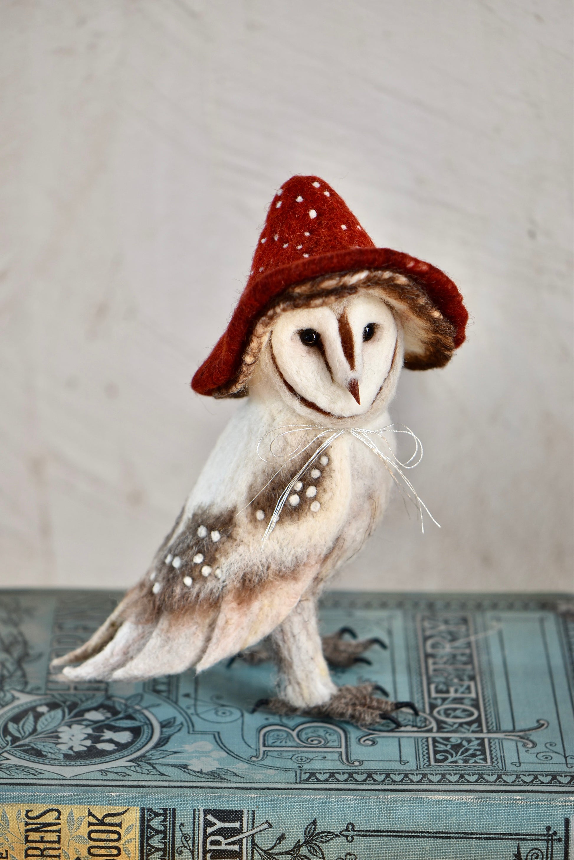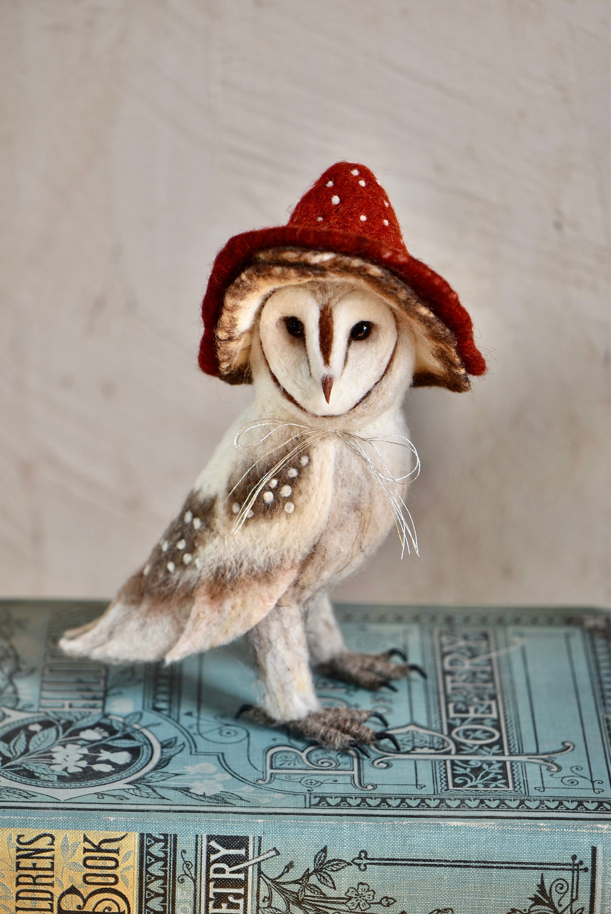 Needle Felted Barn Owl with Mushroom Hat